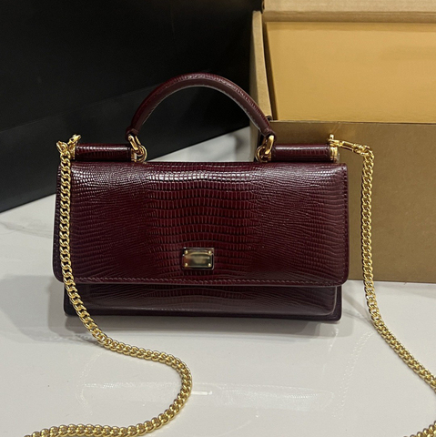 Túi xách nữ thời trang sang trọng với trang trí dây chuyền, Túi Đeo Chéo Nữ có nắp, chất liệu da bò nhập khẩu